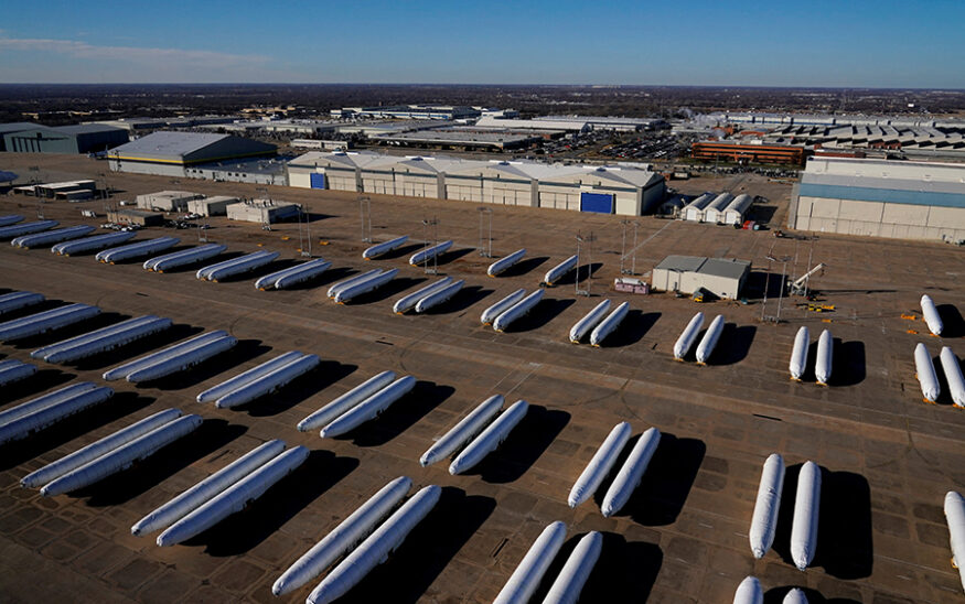 Airplane fuselages bound for Boeing's 737 Max production facility await shipment at Spirit AeroSystems headquarters in Wichita, Kansas, U.S. December 10, 2024. REUTERS/Nick Oxford