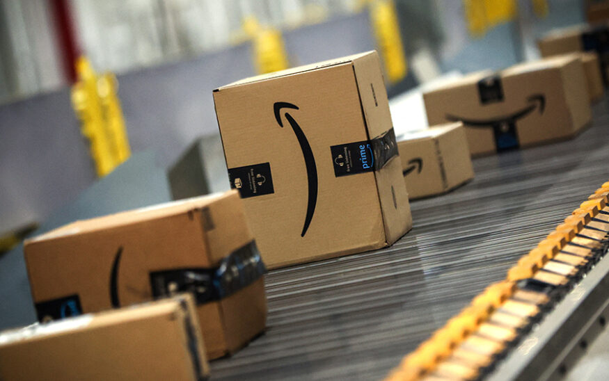 Packages travel on a conveyor at the Amazon's fulfillment center in Robbinsville, New Jersey, U.S., November 27, 2023. REUTERS/Mike Segar