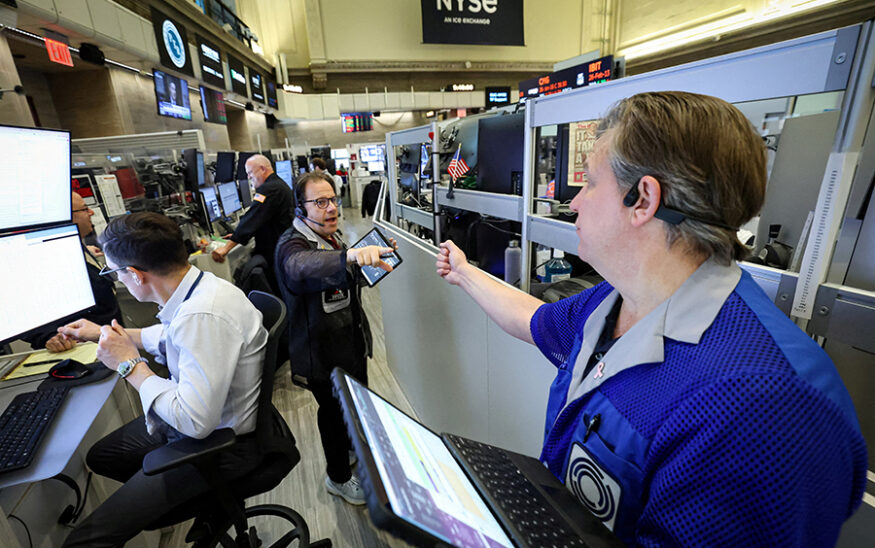 FILE PHOTO: Futures-options traders work on the floor at the New York Stock Exchange's NYSE American (AMEX) in New York City, U.S., January 13, 2026. REUTERS/Brendan McDermid/File Photo