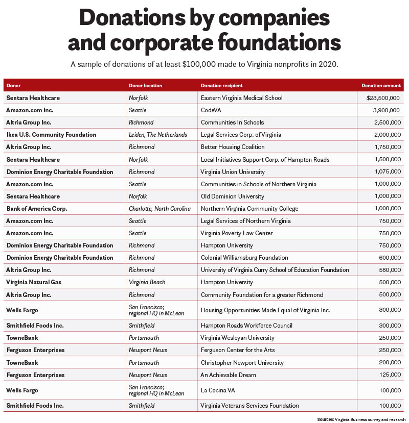 Virginia’s other major philanthropic gifts in the past year came from familiar sources — if not to the public at large, then definitely at the institutions receiving the donations.