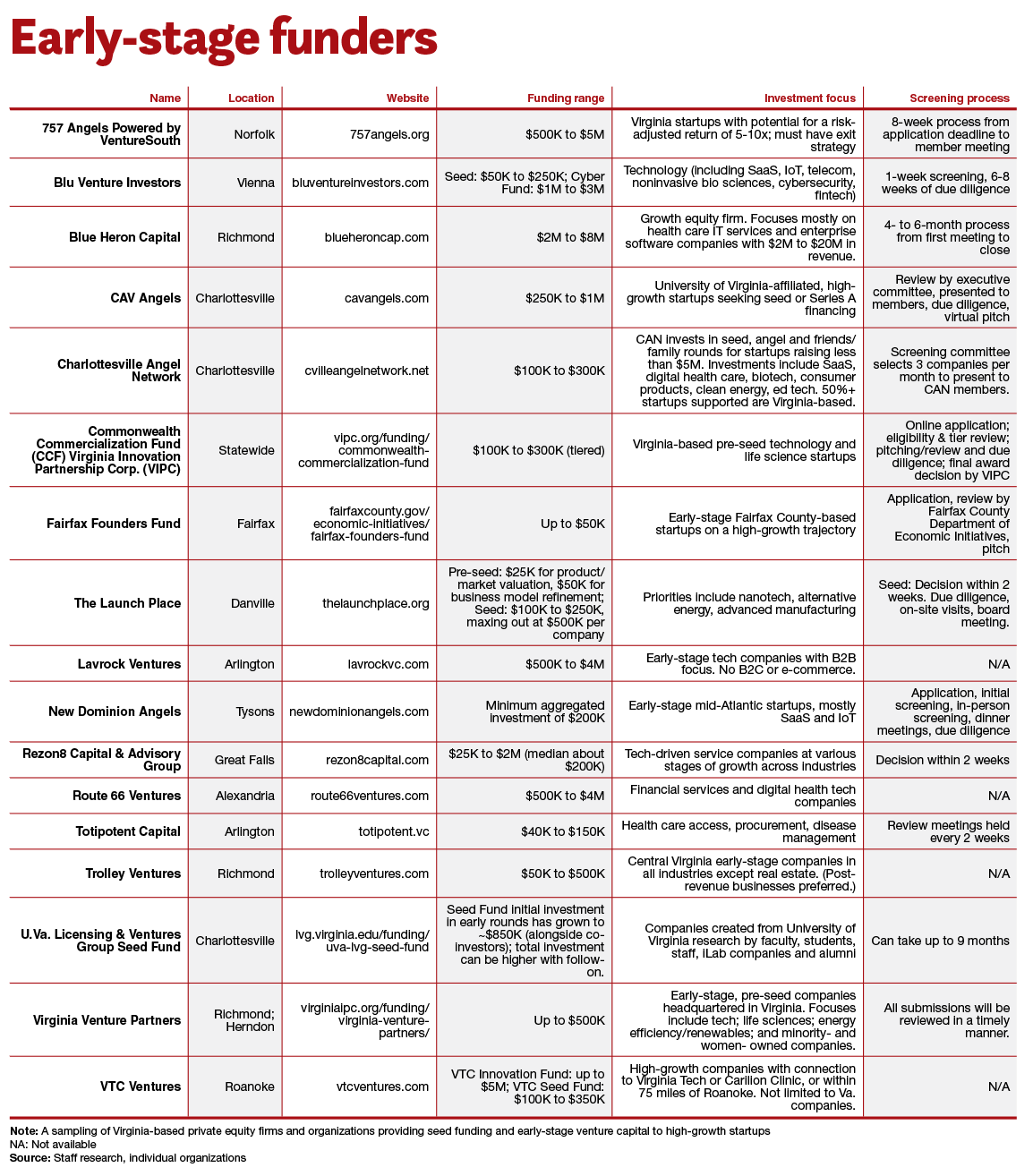 Early-stage funders