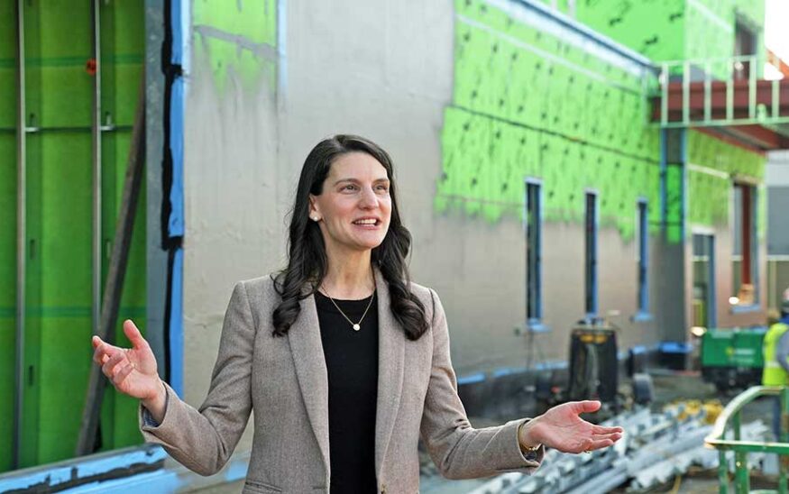 Shaila Menees, chief development officer of HCA Healthcare’s Capital Division, visits the construction site for HCA’s Scott’s Walk Emergency Room, set to open this year in Richmond. Photo by Jay Paul