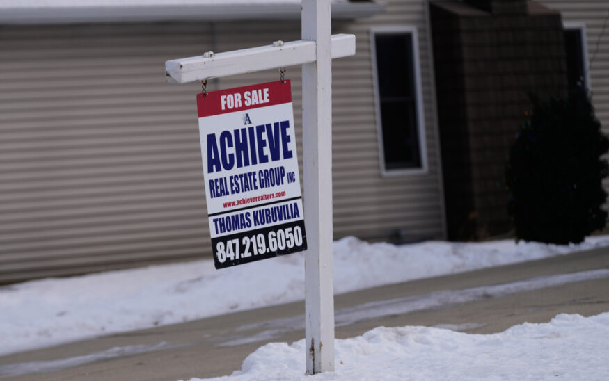 A "For Sale" sign is displayed in front of a home in Prospect Heights, Ill., Monday, Dec. 15, 2025. (AP Photo/Nam Y. Huh)