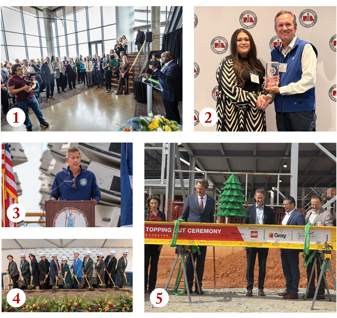 5. Gov. Glenn Youngkin joined Lego Group Vice President Preben Elnef, Lego Manufacturing Virginia General Manager Jesus Ibañez and others at the Oct. 1 topping-out ceremony for the Danish company’s $1 billion Chesterfield facility. (Photo by Katherine Schulte/Virginia Business)
