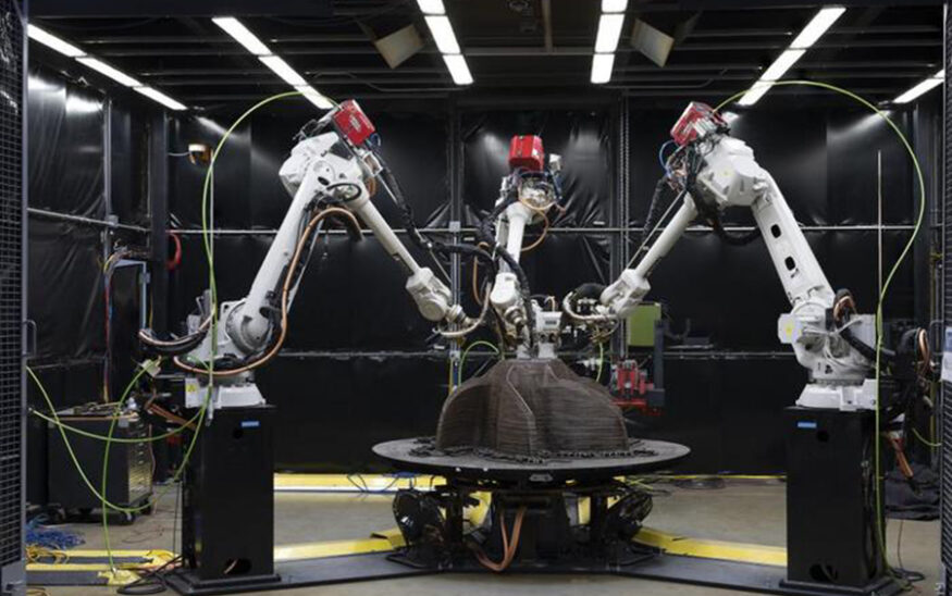For its manufacturing process, Radian Forge uses wire arc additive manufacturing, or WAAM, which uses an electric arc as a heat source and standard welding wire as the material. With the aid of software, the arc melts the wire and deposits metal layer by layer. The process can rapidly produce large, complex metal components with properties comparable to forgings, a process developed thousands of years ago in which metal is shaped using heat and force, and superior to castings, a process in which metal liquefied by intense heat flows into a mold and solidifies.