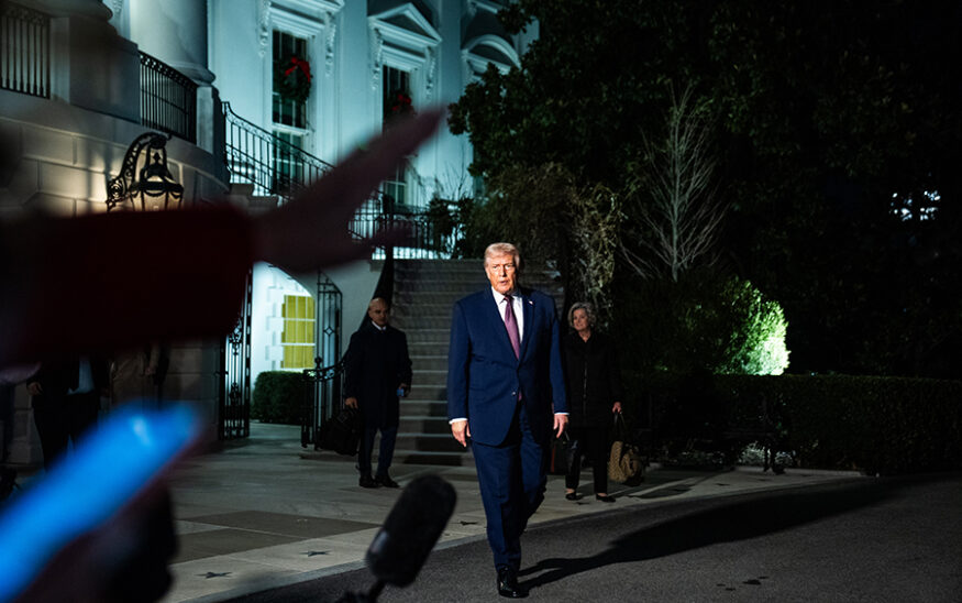 President Donald Trump speaks with the press before boarding Marine One on the South Lawn of the White House on Dec. 19. MUST CREDIT: Demetrius Freeman/The Washington Post