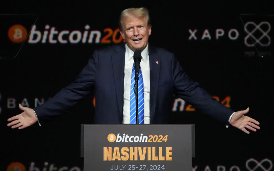 FILE - Then Former President Donald Trump speaks at the Bitcoin 2024 Conference, July 27, 2024, in Nashville, Tenn. (AP Photo/Mark Humphrey, File)