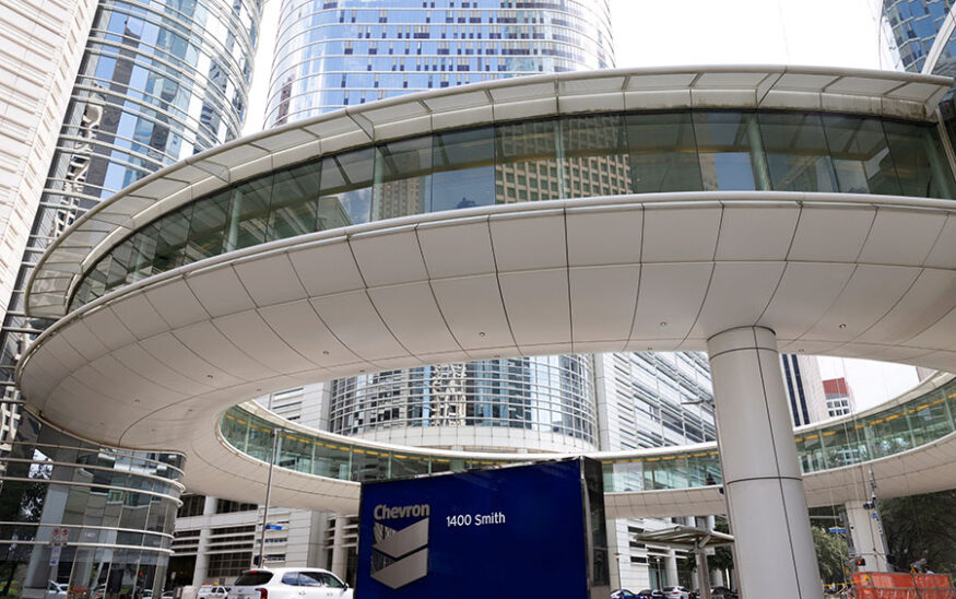 A Chevron logo outside the Chevron building in Houston, Texas, U.S. August 19, 2025. REUTERS/Kaylee Greenlee