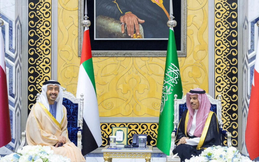 Saudi Foreign Minister Faisal bin Farhan al Saud receives United Arab Emirates' Deputy Prime Minister and Minister of Foreign Affairs Sheikh Abdullah bin Zayed Al Nahyan ahead of an exceptional meeting of the Gulf Cooperation Council (GCC), the first in-person meeting of Gulf leaders since their states became a front in the Iran war two months ago, In Jeddah, Saudi Arabia, April 28, 2026. Saudi Press Agency/Handout via REUTERS