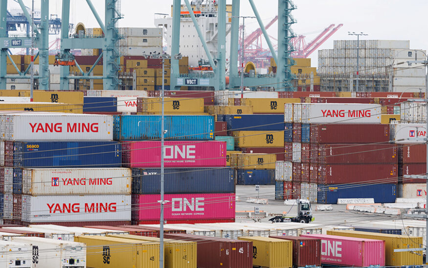 Shipping containers sit at the Port of Los Angeles in San Pedro, California, U.S., November 5, 2025. REUTERS/Mike Blake