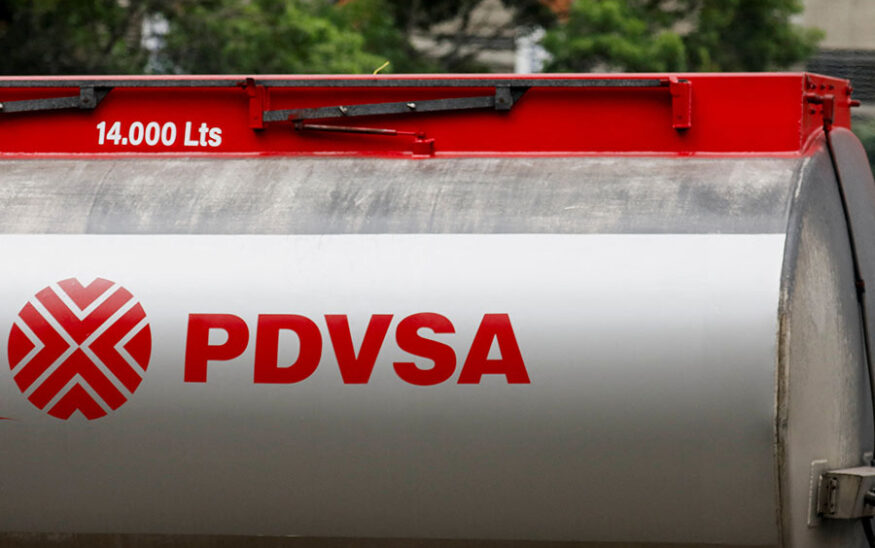 The logo aof Venezuelan state oil company PDVSA is seen on a fuel tank truck, in Caracas, Venezuela May 14, 2025. REUTERS/Leonardo Fernandez Viloria/File Photo
