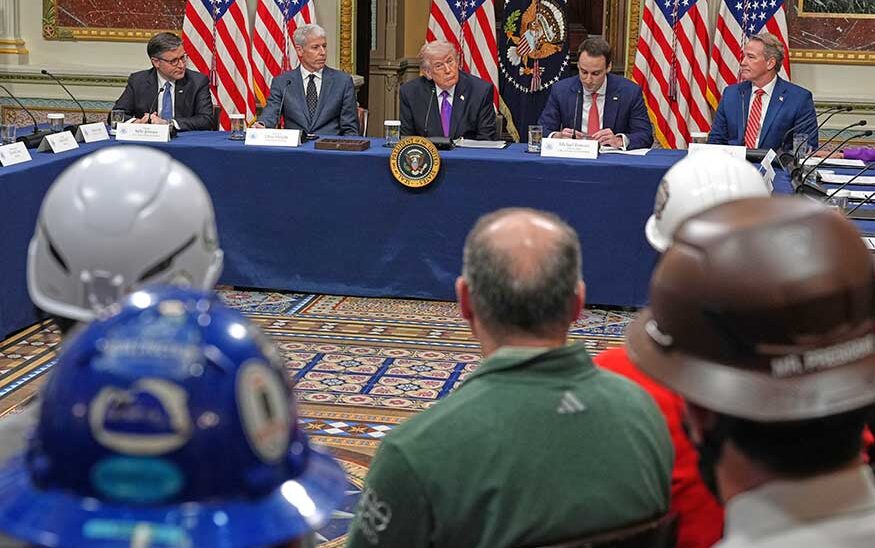 President Donald Trump meets with tech leaders March 4 as they sign a pledge that their companies will pay for power infrastructure upgrades needed for their platforms. AP Photo/Jacquelyn Martin