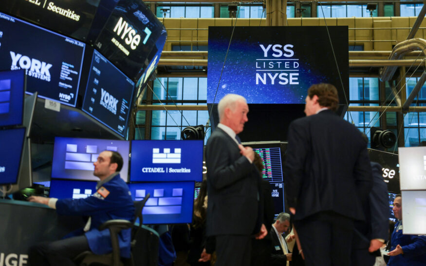 Logos of York Space Systems are displayed on screens during the company's IPO at the New York Stock Exchange (NYSE) in New York City, U.S., January 29, 2026. REUTERS/Jeenah Moon