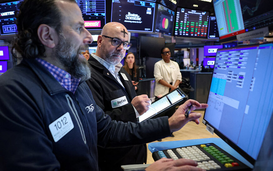 Traders work on the floor at the New York Stock Exchange (NYSE) in New York City, U.S., February 18, 2026. REUTERS/Brendan McDermid